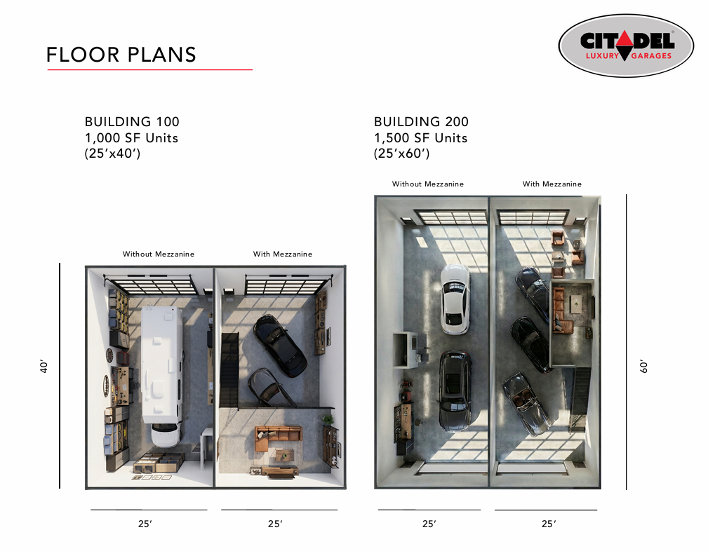 Citadel Garages offers two distinct garage condo layouts, each designed around flexibility, function, and long-term value.
